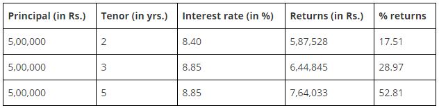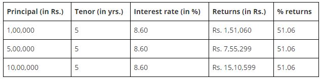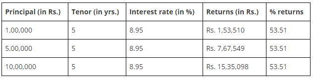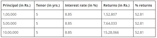 Below are the returns you get when taking an FD for a 5-year term.