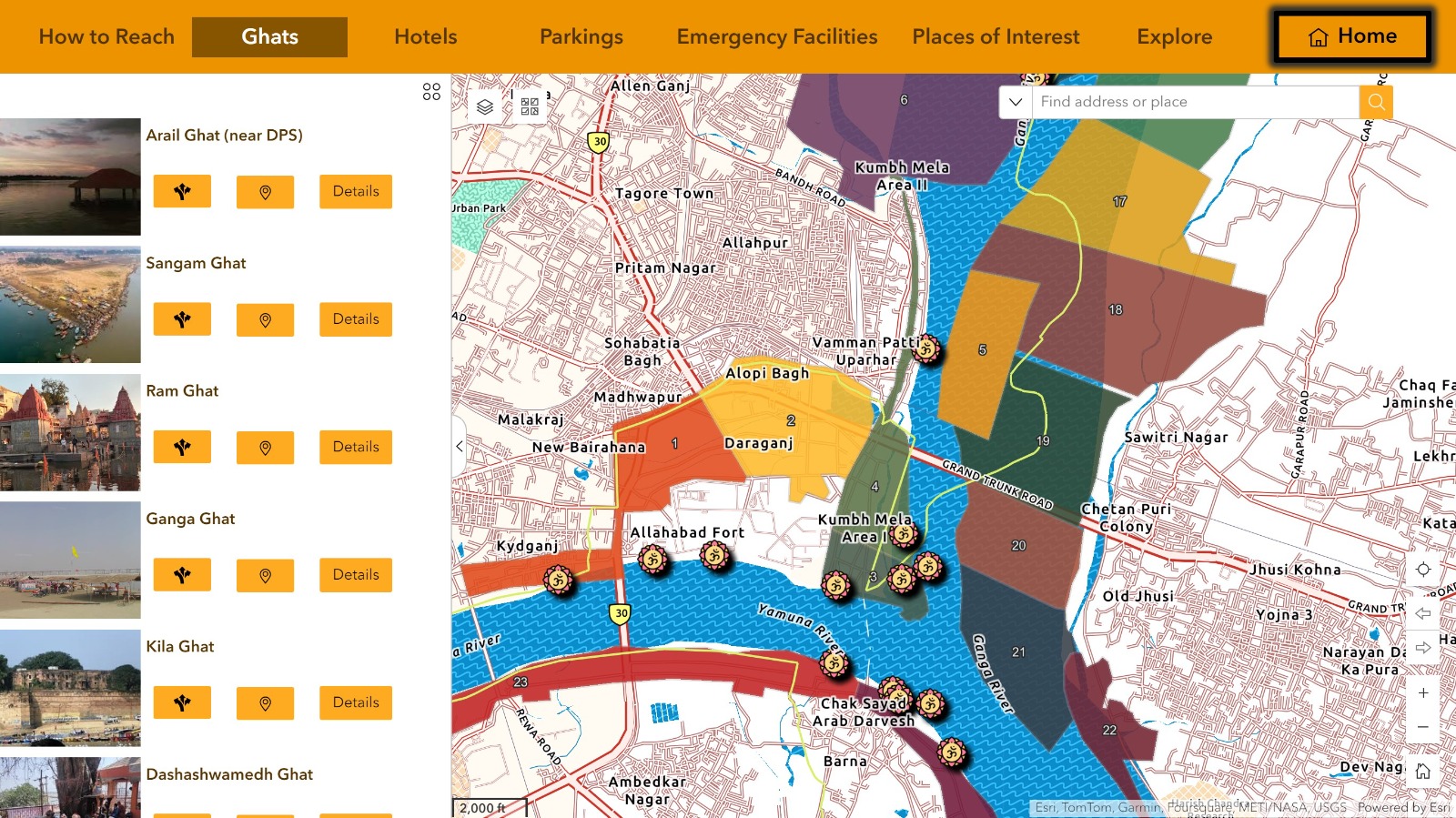 Users can mark the locations of events, programs, and other activities through the app. It also displays ArcGIS Story Maps to show important temples and other tourist places in Prayagraj.