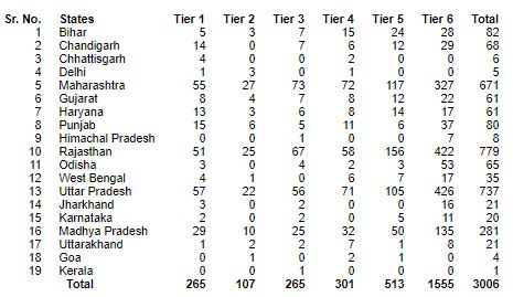 Grant Thornton team has conducted the physical survey in 19 states in 3006 Nextgen Vakrangee outlets, which was held between May 2019 to Nov 2019. The comprehensive list of outlets against each state is mentioned below: