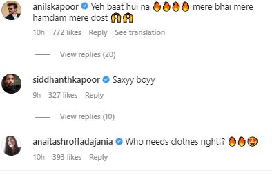 Celebrities can't keep their calm with Aditya's hot pictures. The actor's co-star in the upcoming series wrote, "Yeh baat hui na... mere bhai mere hamdam mere dost."