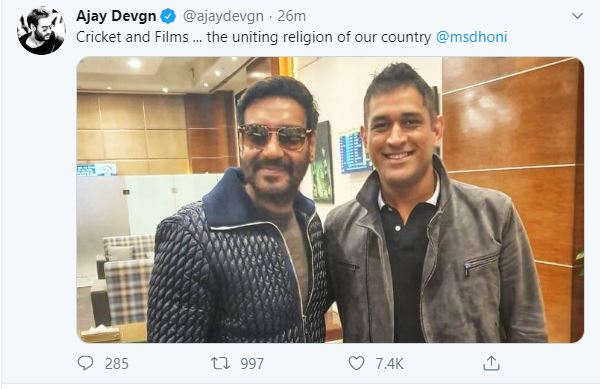 Ahead of Tanhaji release, Ajay Devgn meets MSD!