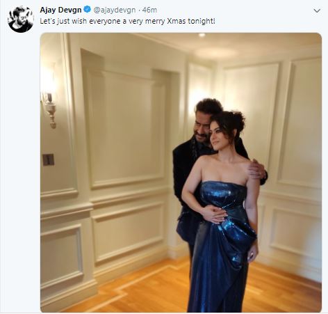 Ajay Devgn took to Twitter to share a sizzling post of the duo keeping the caption minimal that read, "Let's just wish everyone a very merry Xmas tonight!"