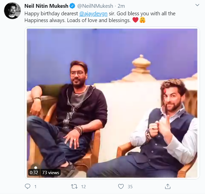 Actor Neil Nitin Mukesh shared an adorable video on Twitter and wrote: "Happy birthday dearest @ajaydevgnsir. God bless you with all the happiness always. Loads of love and blessings."