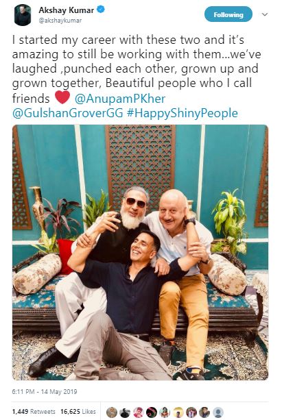 Recalling the golden old days, Akshay posted a picture of the trio on his Twitter handle with a beautiful message which read, "I started my career with these two and it's amazing to still be working with them...we've laughed, punched each other, grown up and grown together, Beautiful people who I call friends."
