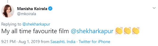 Not only him, but veteran actor Manisha Koirala also voiced her support for Kapur saying that the film is her "all-time favourite."