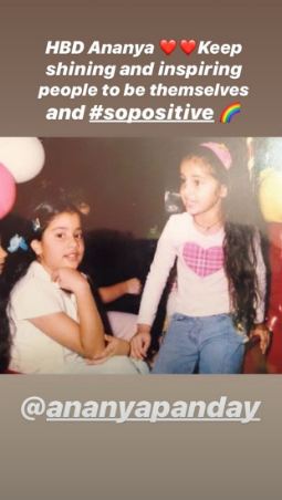 'Dhadak' actor Jhanvi Kapoor wished Panday in the cutest way ever, by sharing a throwback picture from their childhood and captioned picture as, "HBD Ananya Keep shining and inspiring to be themselves and #sopositive @ananyapanday".