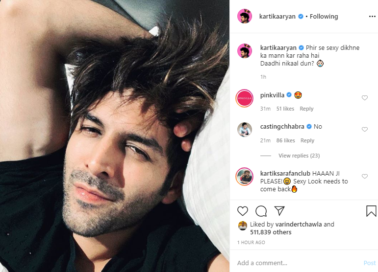 Taking it to the captions, the 'Pati, Patni Aur Woh' actor wrote: "Phir se sexy dikhne ka mann kar raha hai. Daadhi nikaal dun (Feel like looking sexy all over again. Should I remove my beard)?"