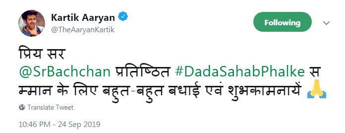 Kartik Aaryan also extended his warm wished to the veteran actor on social media.
