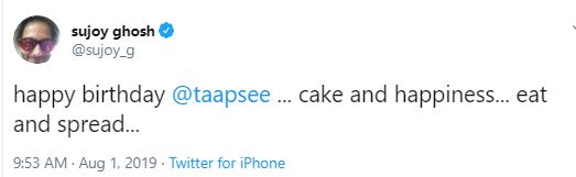 "Happy birthday taapsee ... cake and happiness...eat and spread," filmmaker Sujoy Ghosh wished.