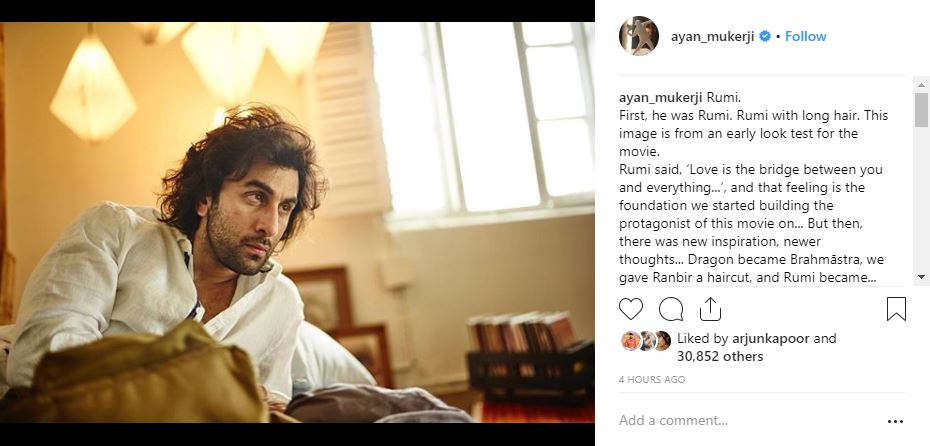 “Rumi. First, he was Rumi. Rumi with long hair. This image is from an early look test for the movie. Rumi said, ‘Love is the bridge between you and everything...’, and that feeling is the foundation we started building the protagonist of this movie on... But then, there was new inspiration, newer thoughts... Dragon became Brahmāstra, we gave Ranbir a haircut, and Rumi became... Shiva. #brahmastra #shivadiaries #memories #creativeprocess #evolving” Ayan wrote alongside the picture.