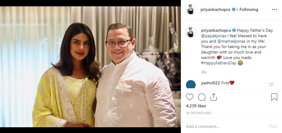 Priyanka never shies away from sharing about her family on social media. Just a week prior to Father's Day, she paid an emotional tribute to father Ashok Chopra on his death anniversary.