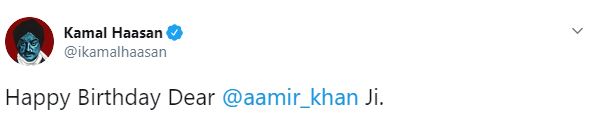 “Happy Birthday Dear Aamir Khan Ji,” wrote actor turned politician Kamal Hassan.