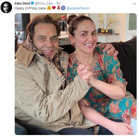 Along with Bobby, daughter Esha Deol also poured in birthday wishes to her father by sharing a picture on Twitter as she wrote, "Happy birthday papa @aapkadharam." In the snap shared by Esha, the father-daughter duo are seen holding hands and smiling together while posing for the picture.