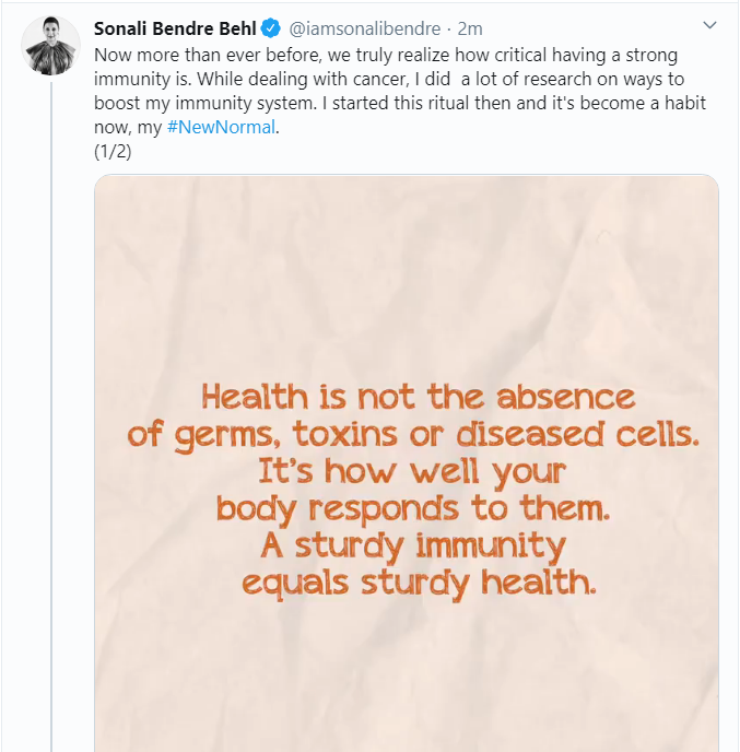 "Now more than ever before, we truly realize how critical having a strong immunity is. While dealing with cancer, I did a lot of research on ways to boost my immune system. I started this ritual then and it's become a habit now, my #NewNormal."