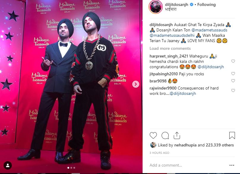 “Aukaat Ghat Te Kirpa Zyada, Dosanjh Kalan Ton Madame Tussauds, Wah Maalka Terian Tu Jaaney, FIRST Turbaned SIKH to Have Wax Figure at Madame Tussauds, LOVE MY FANS. (I am blessed with more than I deserve. It is all God’s will. FIRST Turbaned SIKH to Have Wax Figure at Madame Tussauds)”
