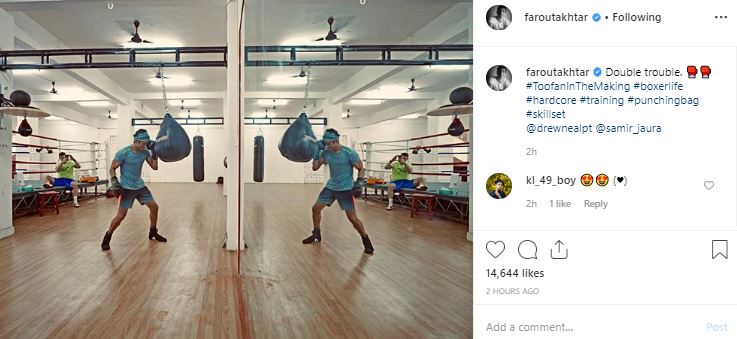 The 'Rock On!!' actor on Saturday took to Instagram to share pictures from the boxing training session he is undergoing for the Rakeysh Omprakash Mehra directorial.