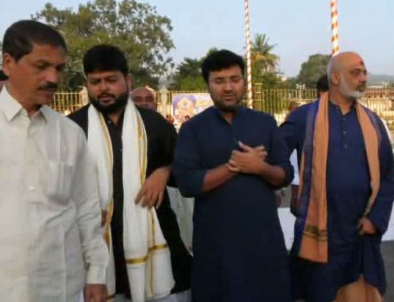 The temple authorities welcomed the movie personalities in a traditional manner, after which they sought blessings.