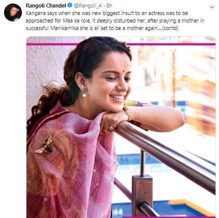 Along with the poster, Rangoli tweeted, "Kangana when she was new biggest insult to an actress was to be approached for Maa ka role, it deeply disturbed her, after playing a mother in successful Manikarnika she is all set to be a mother again. Today mainstream young top actress at the peak of her career proudly plays maa ke roles and India loves, this is new India #Panga #24thJanuary."