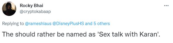 Another user dropped a comment, "The should rather be named as 'Sex talk with Karan'."