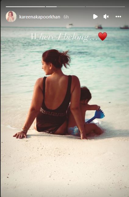 Kareena, who can be seen soaking the sun in a black monokini, wrote, "Where I belong," alongside the picture.