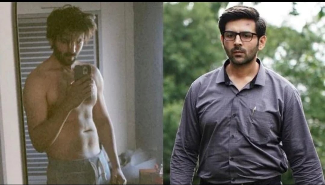 Kartik also dropped a collage of his pictures from the time when he was fit to the time when he gained weight to play his character in the film.