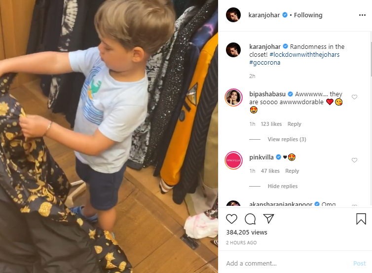 The 'Kuch Kuch Hota Hai' director captioned this adorable video as "Randomness in the closet! #lockdownwiththejohars #gocorona."