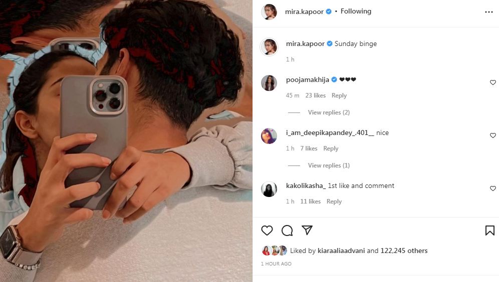 Mira took to her Instagram handle to share how the couple is 'Sunday binging'.