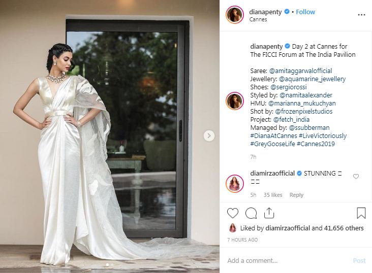 While Deepika returned home to Ranveer Singh after giving us a few of the most iconic fashion moments, Diana Penty sashayed into "Day 2 at Cannes" in an Amit Aggarwal saree for the FICCI Forum at the India Pavilion.