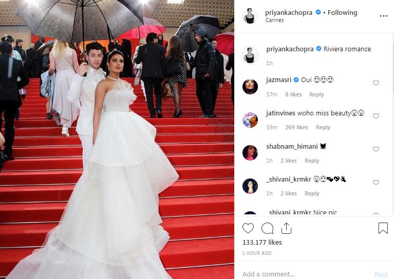 Wearing a gorgeous Georges Hobeika number, PeeCee looked like a dream when she ascended the famous Cannes steps with Nick in tow. Braving a light drizzle, the couple attended the screening of French drama film 'Les Plus Belles Annees D'Une Vie'.