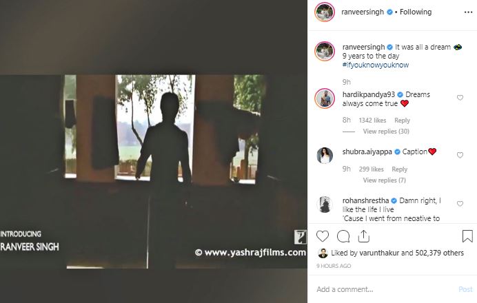 The 'Ladies vs Ricky Bahl ' actor hopped on to Instagram to share a glance from his debut blockbuster hit 'Band Baaja Baaraat' and captioned it as, "It was all a dream 9 years to the day #ifyouknowyouknow."