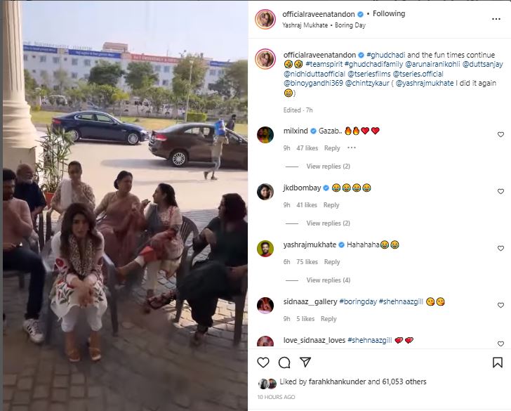 Raveena Tandon recreates Shehnaaz Gill's viral trend on 'Ghudchadi' sets