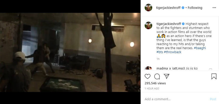 The 'War' actor concluded the post by saying: "As an action hero if there's one thing I've learned, is that the guys reacting to my hits and/or taking them are the real heroes. #baaghi #bts #throwback."