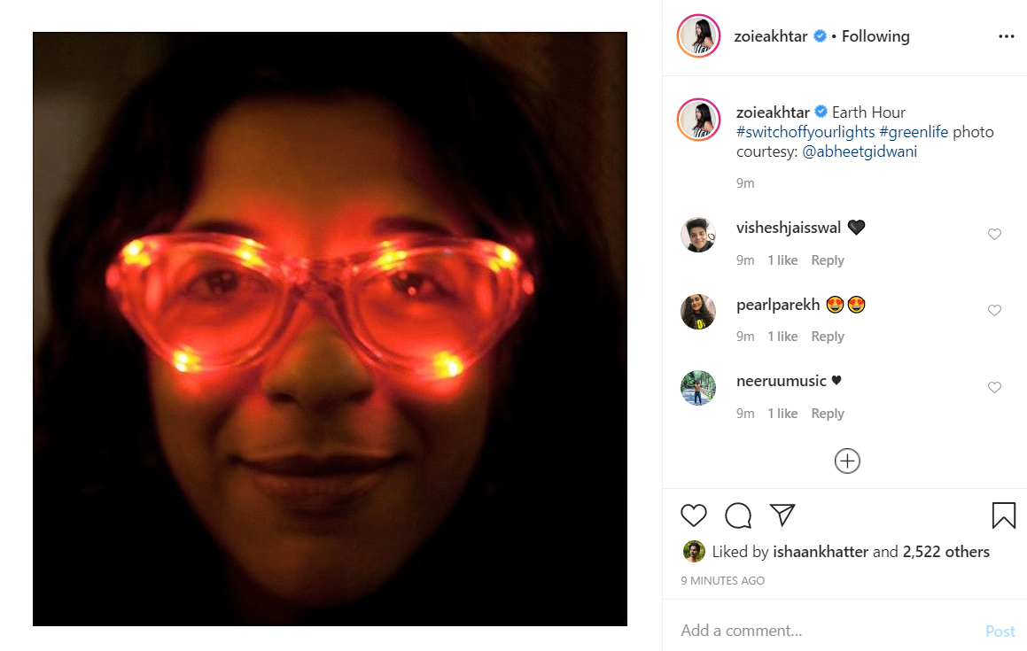 Director Zoya Akhtar too had shared a selfie of hers on Instagram, that saw the 47-year-old filmmakers in half-darkness with red-light framed spectacles.