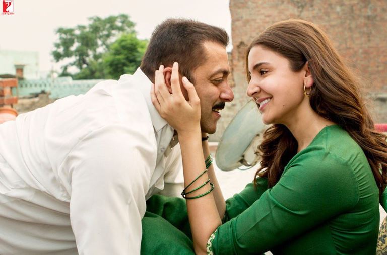 The picture shows a scene from the film where the lead pair Salman Khan and Anushka Sharma is romancing on the terrace.