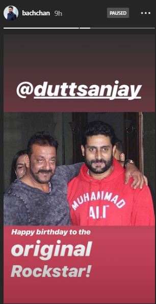 Abhishek Bachchan shared a series of pictures with the 'Munna Bhai M.B.B.S' actor on his Instagram story. In one of the pictures both the actors were seen posing for the shutterbugs and Abhishek captioned it as "The OG," while in the second click the actor wrote, "Happy Birthday to the original rockstar."