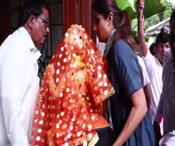 Ace actor Shilpa Shetty was seen welcoming a Ganesha idol into her home with the chants of "Ganpati Bappa Morya."
