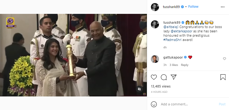 "@altbalaji Congratulations to our boss lady @ektarkapoor as she has been honoured with the prestigious #PadmaShri award," he added the caption.