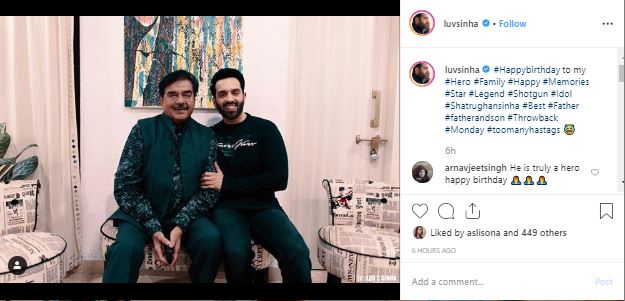 Addressing him as 'Hero', Shatrughan's son Luv Sinha also took to his Instagram handle to post a throwback picture of the two, captioning the photograph with a lot of hashtags.