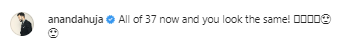 What caught everyone's attention was Sonam's husband Anand Ahuja's comment. He wrote, "All of 37 now and you look the same" with some emojis.