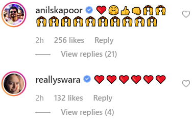 Her father and Bollywood star Anil Kapoor showered the couple with emojis in the comments section. Actor Swara Bhasker too left a similar comment with a bunch of hearts.