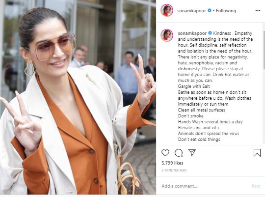 Sonam Kapoor pens valuable advice in wake of coronavirus pandemic