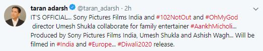 Sony Pictures India announces Umesh Shukla directed family entertainer 'Ankh Micholi'