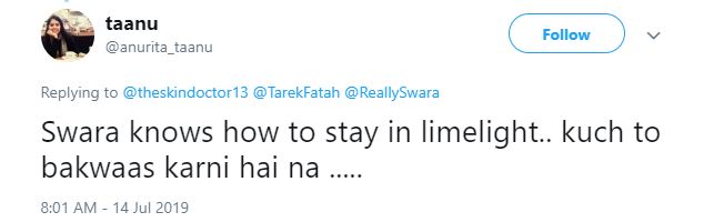 "Swara knows how to stay in limelight.. kuch to bakwaas karni hai na."