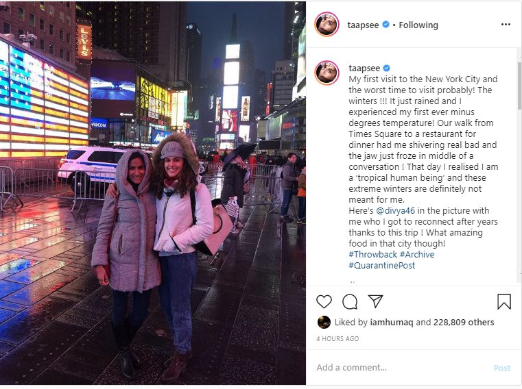 Taapsee shares her first NYC experience in throwback picture