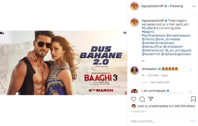 The 'Student of the Year 2' actor also shared the poster of the upcoming party number, which features Shraddha Kapoor and him. He wrote, "These baaghis are badass and so is their party jam. #DusBahane 2.0 coming soon #Baaghi3."