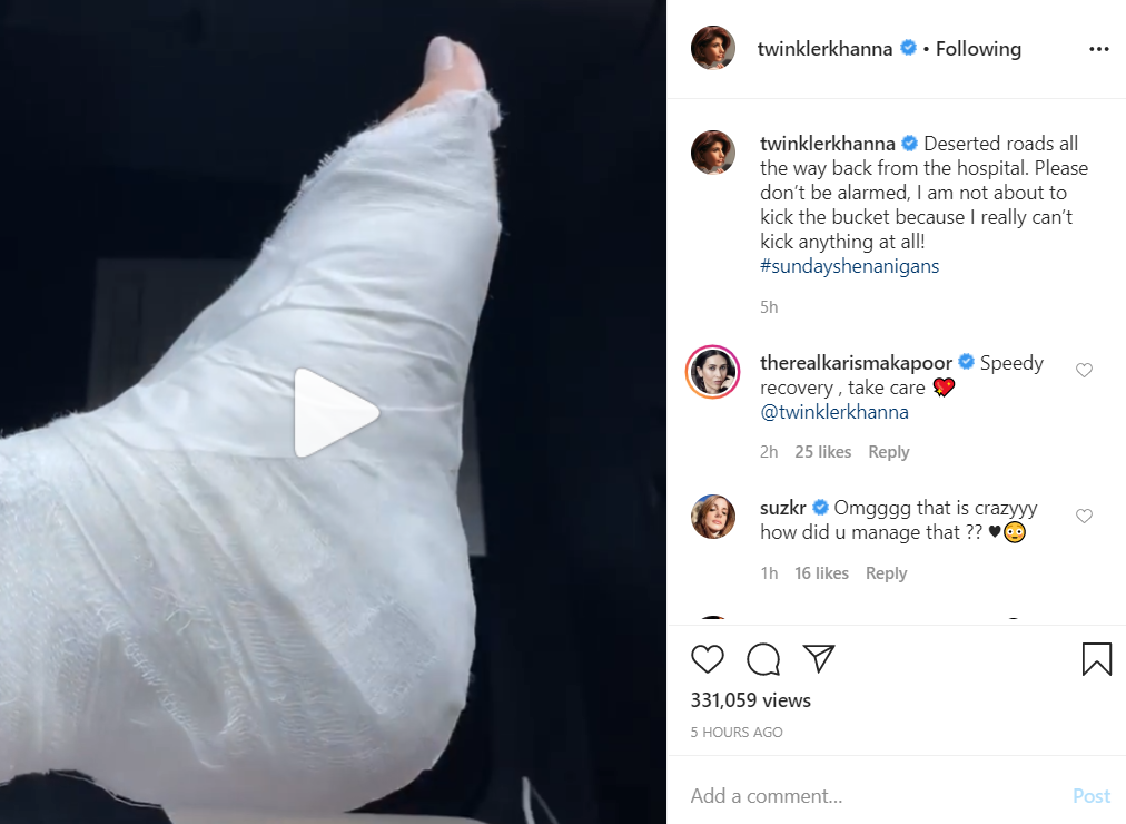 Continuing to record the empty streets of Mumbai, the 'Baadshah' star further said: "So this Sunday my husband's pocket is lighter, our hearts have never been full and my foot is bloody broken."