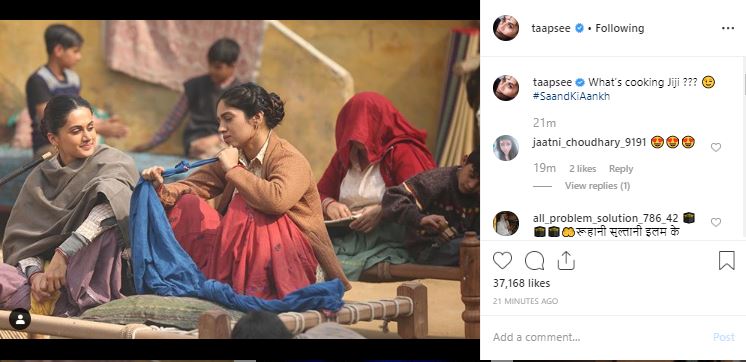 'What's cooking jiji?' Taapsee Pannu shares still from 'Saand Ki Aankh' sets