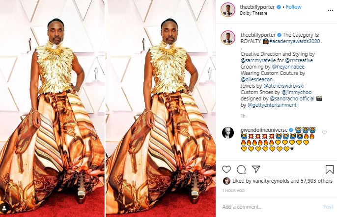 Billy Porter makes glitzy mark in golden at 2020 Oscars red carpet