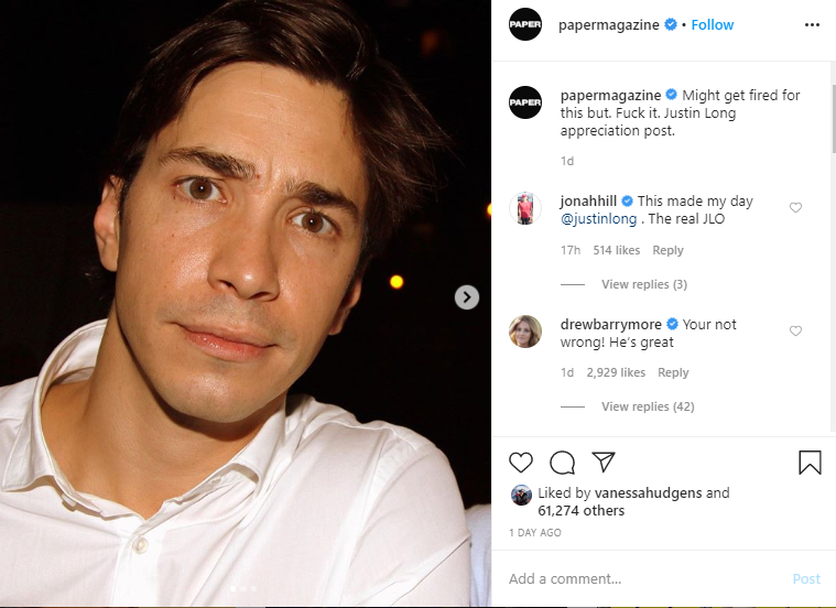 On Instagram, Paper Magazine shared an appreciation post in honour of the actor. The outlet wrote alongside a series of throwback photos of the actor. "Might get fired for this but. F**k it. Justin Long appreciation post."
