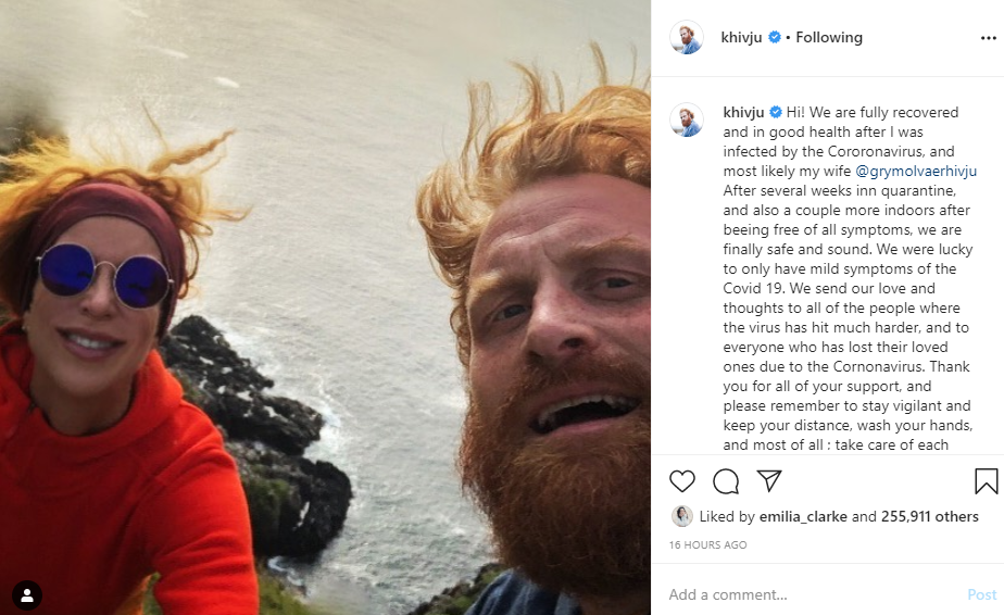'Game of Thrones' star Kristofer Hivju recovers from coronavirus, says he is in good health